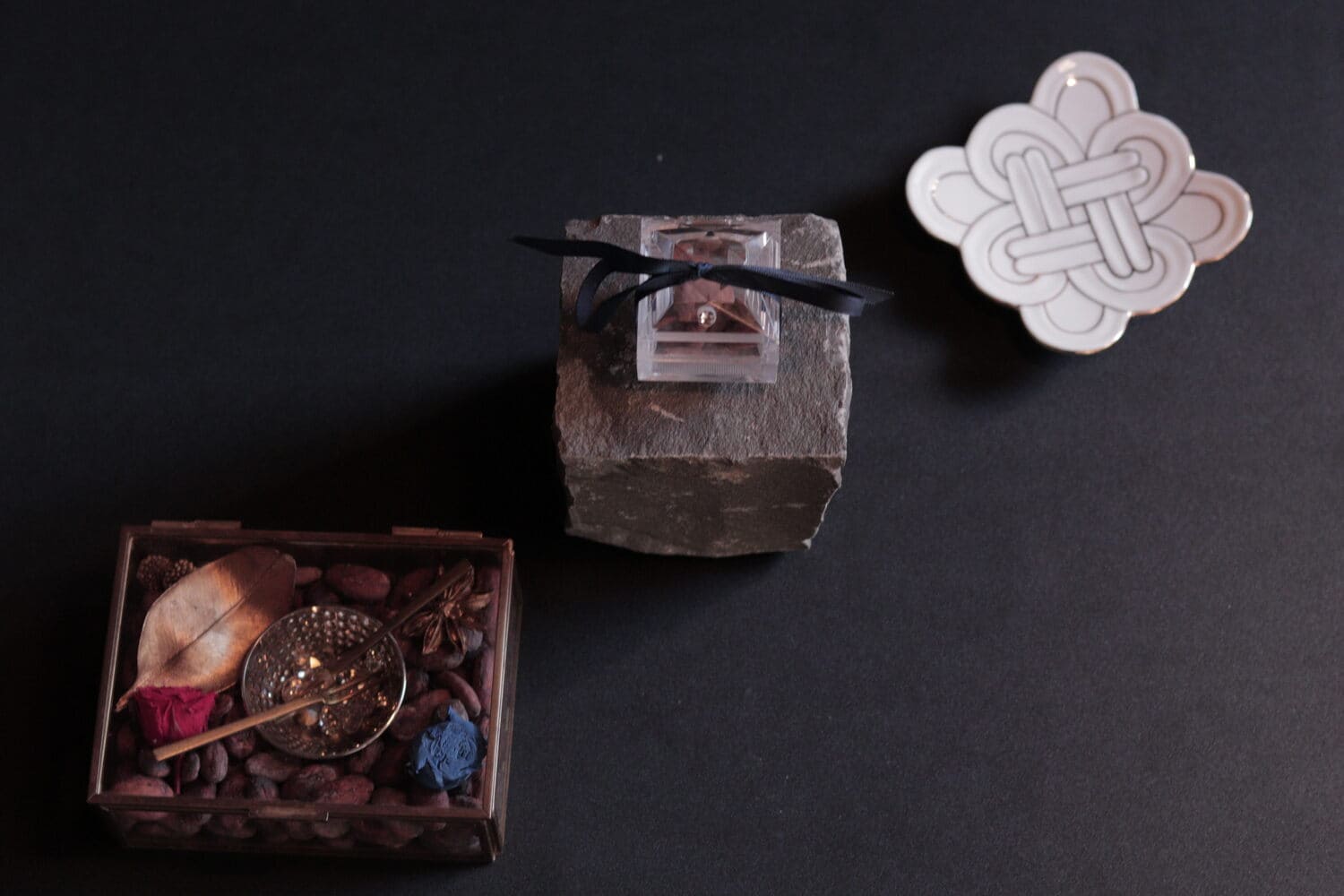 - チョコレートをジュエリーケースにスパイスと桜のスモーク